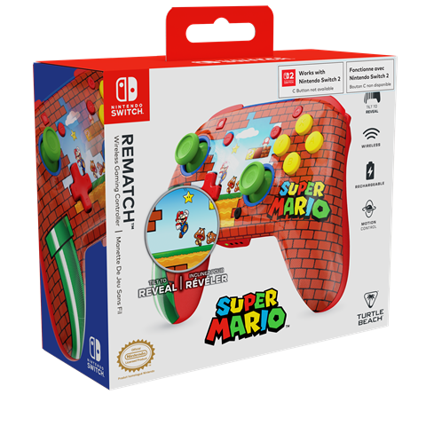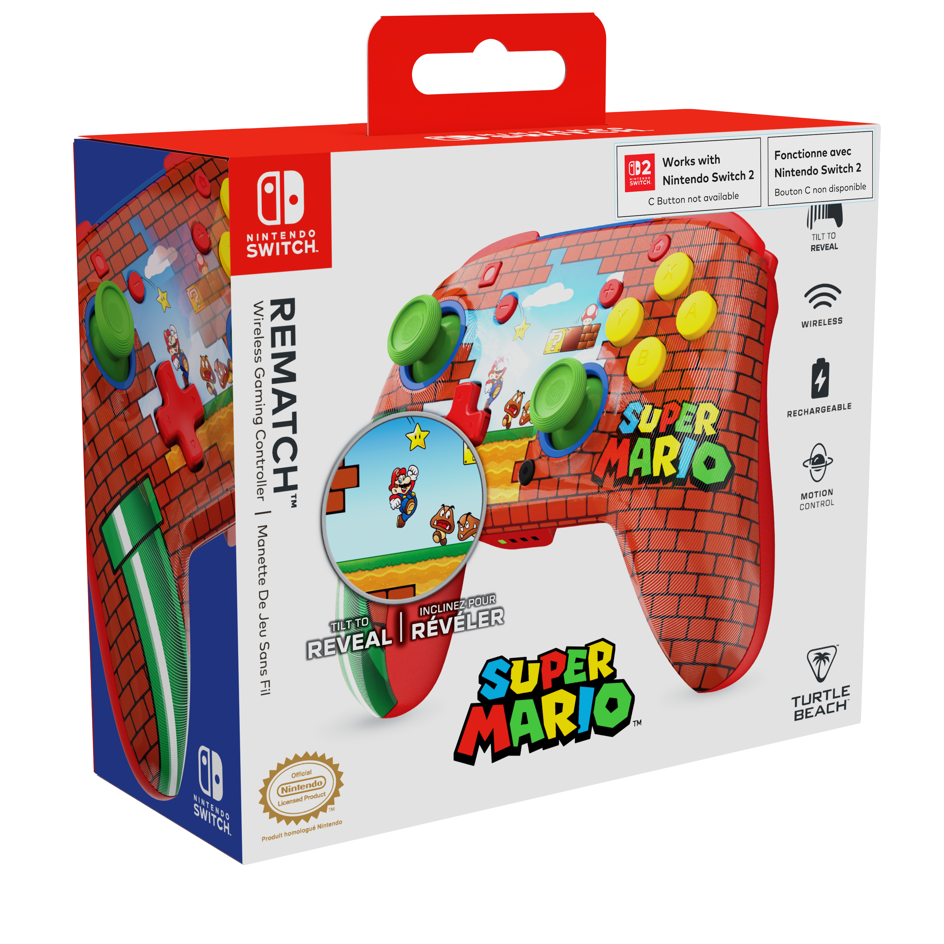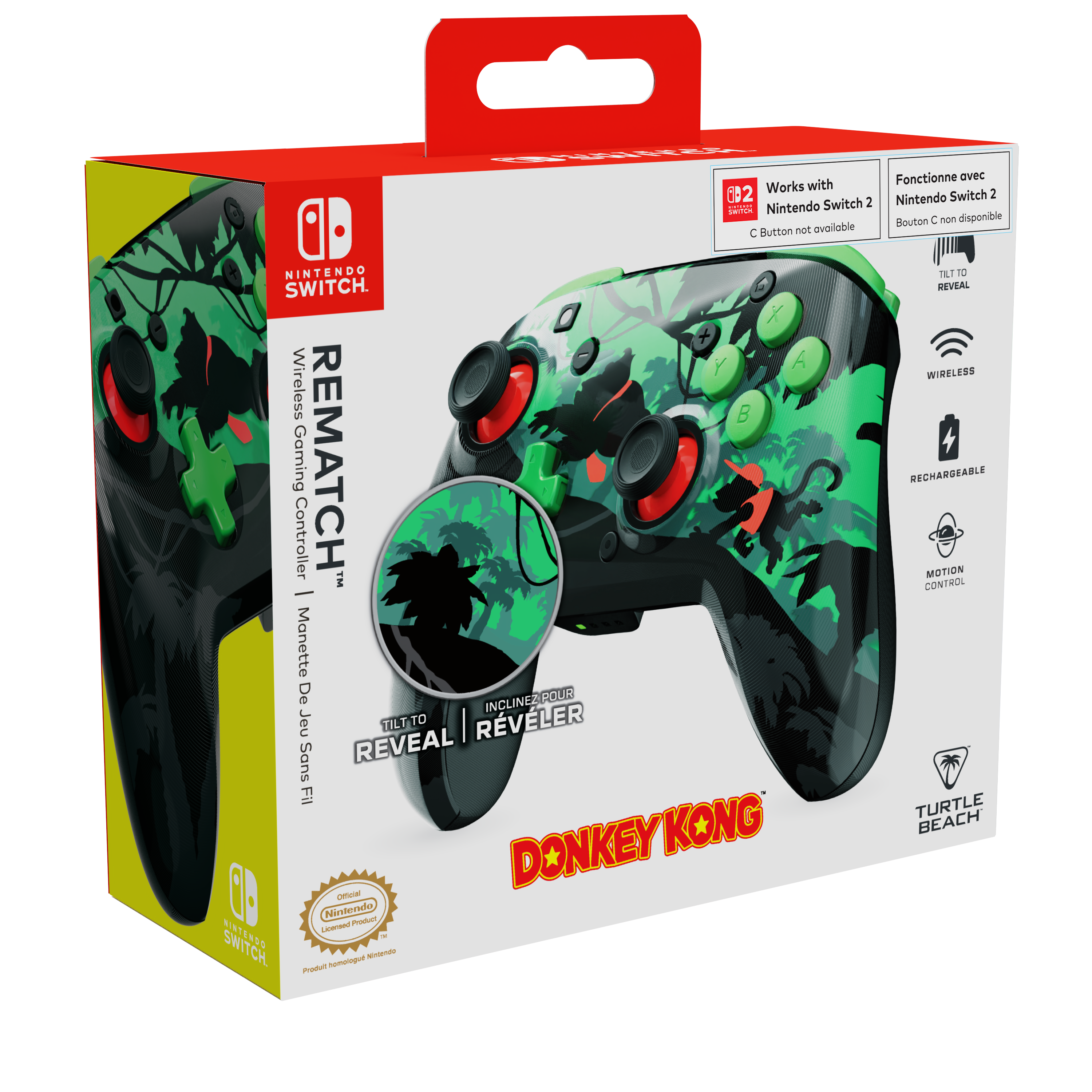 Nintendo gamers can elevate their gameplay with the Donkey Kong™ Rematch Wireless Controller and Turtle Beach Rematch Wireless Controller: Mario Bricks for Nintendo Switch, Nintendo Switch Lite, and Nintendo Switch OLED Model. These controllers also work with Nintendo Switch 2. Featuring lenticular designs that shift as gamers move, the Donkey Kong controller reveals two vibrant jungle visuals that bring the character’s world to life. Tilt the Mario Bricks controller to reveal Mario’s signature brick breaking move. Gamers will play with natural precision using built-in motion controls in games like Donkey Kong™ Bananza, Mario Kart™ 8, and Mario Kart™ World.